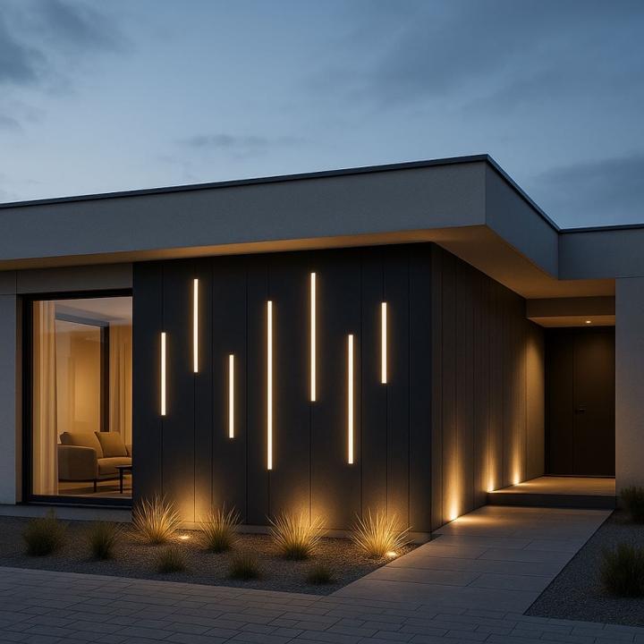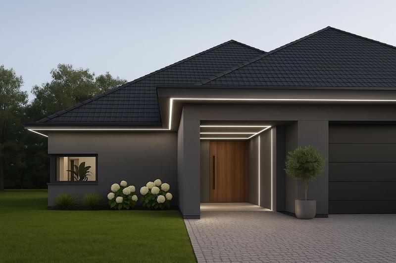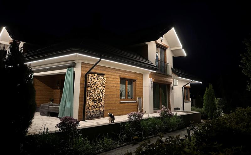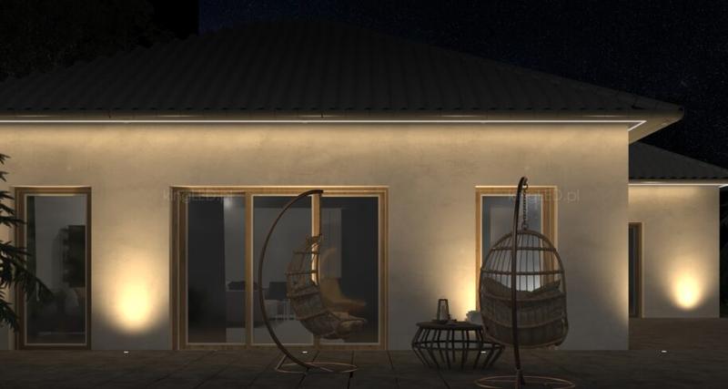 - Oświetlenie elewacji może podkreślać detale architektoniczne i poprawiać bezpieczeństwo wokół domu.