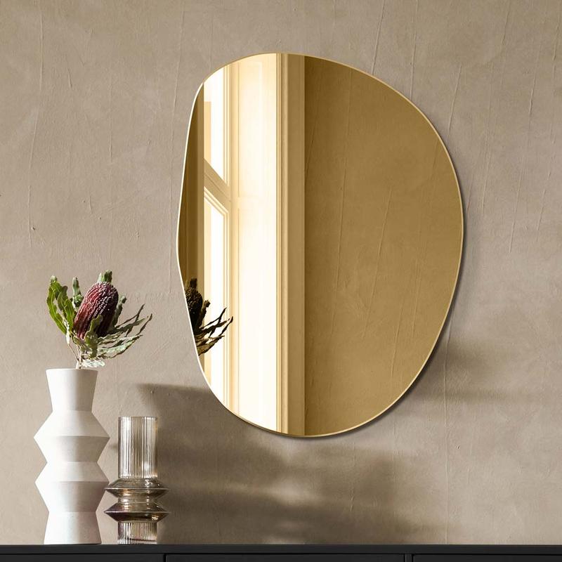Inspiracje dotyczące stylizacji z dużym złotym lustrem w centrum uwagi
